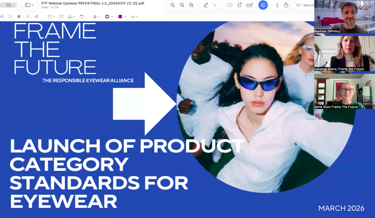 Frame the Future is convening the industry to form the task force for the development of the EU’s Product Environmental Footprint Category Rules (PEFCR) for eyewear.