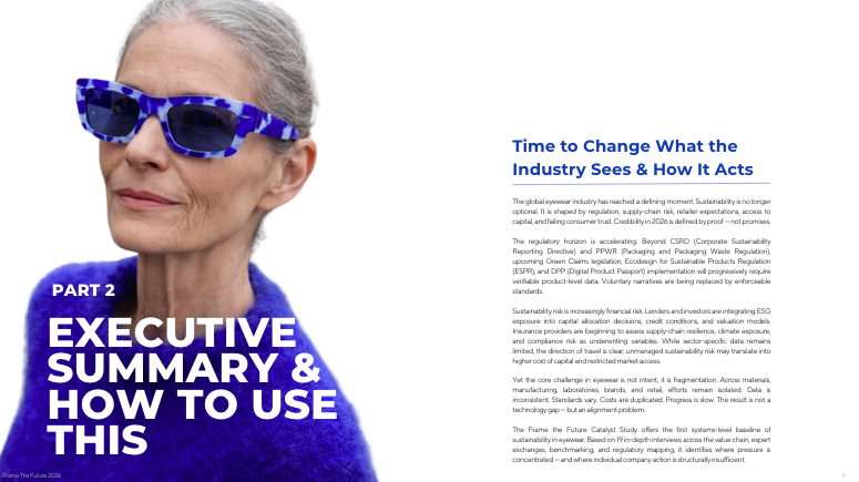 At MIDO, Frame the Future took The Vision Stage and introduced the alliance and shared the first insights from the Catalyst Study - the industry’s first baseline analysis mapping sustainability across the eyewear value chain, grounded in expert interviews and in-depth research.